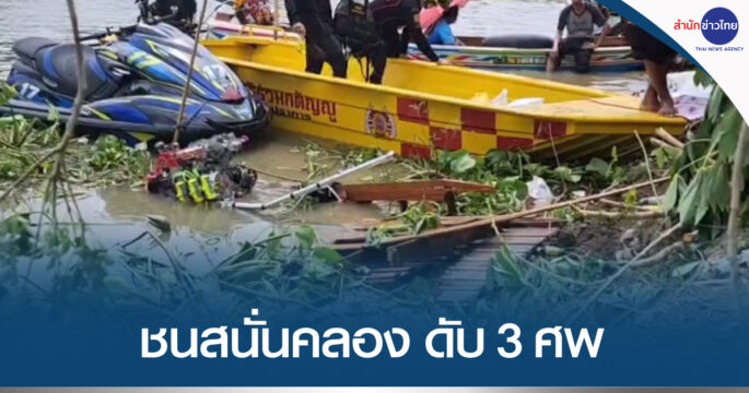 เกิดอุบัติเหตุเจ็ตสกีเสียการควบคุม พุ่งชนเรือหางยาวที่แล่นสวนมา ภายในคลองหนองงูเห่า อ.บางพลี จ.สมุทรปราการ มีผู้เสียชีวิต 3 ราย