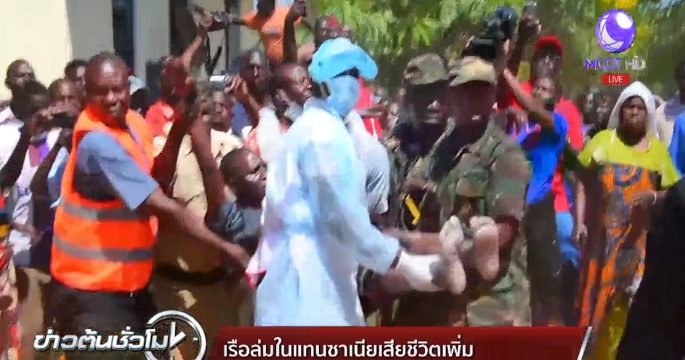 เจ้าหน้าที่สาธารณสุขได้นำชายหนุ่มที่พบว่ารอดชีวิตเพียงคนเดียว จากเหตุเรือเฟอร์รี่ล่มในทะเลสาบวิคตอเรียของแทนซาเนียเมื่อ 2 วันก่อน