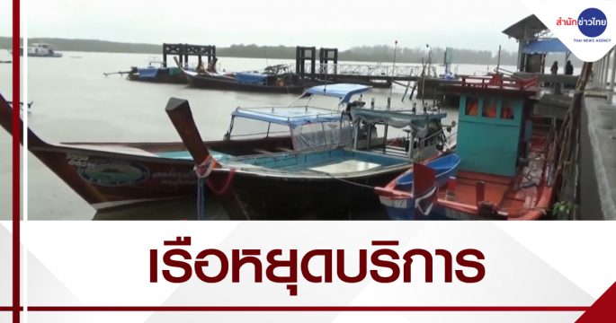 จ.ตรัง คลื่นลมในทะเลยังคงมีกำลังแรง ทำให้เรือโดยสารต้องหยุดบริการชั่วคราว ส่วนเรือประมงขนาดเล็กต้องหยุดออกทำประมงต่อเนื่องเป็นวันที่ 3