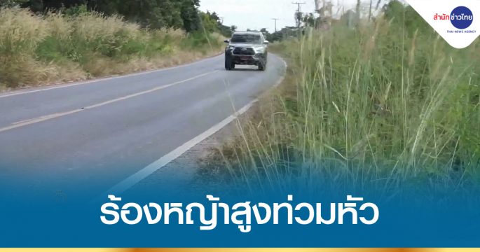 ชาวบ้านมหาสารคามร้องเรียนถนนทางหลวงชนบท หญ้าขึ้นสูงท่วมหัว บดบังทัศนวิสัย เสี่ยงอุบัติเหตุ วอนหน่วยงานรับผิดชอบช่วยตัดหญ้าออก