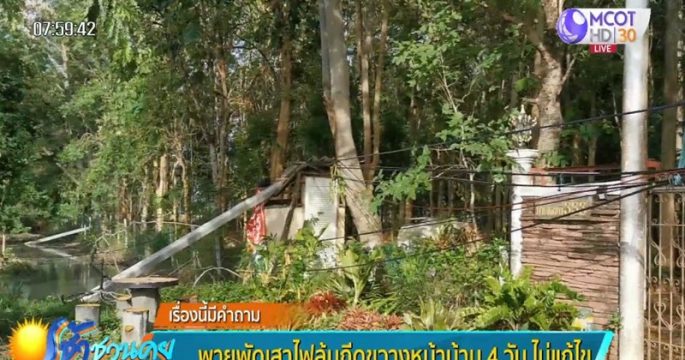 ชาวบ้านหมู่ 4 อ.สูงเนิน จ.นครราชสีมา วอนหน่วยงานที่เกี่ยวข้องเข้ามาแก้ไขสายไฟฟ้าและสายสัญญาณสื่อสารจำนวนมากพาดรั้วบ้าน หลังมีพายุพัดถล่ม และผ่านมาหลายวันแล้วยังไม่มีหน่วยงานใดมาแก้ไข