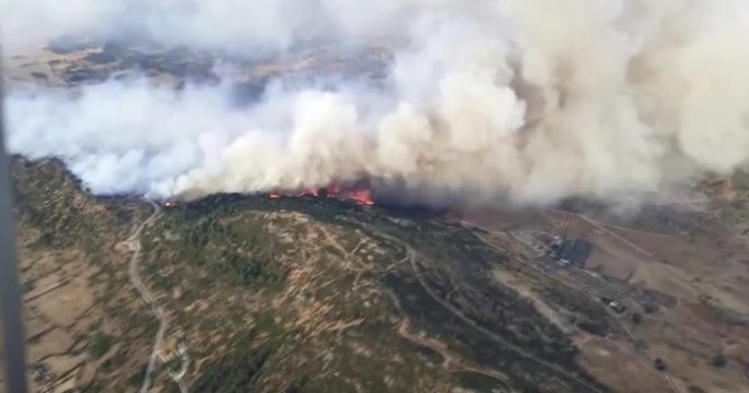 นักดับเพลิงและหน่วยฉุกเฉินของกองทัพสเปนกำลังเร่งควบคุมไฟป่าท่ามกลางอากาศร้อนจัดในแคว้นมาดริด ที่ตั้งของกรุงมาดริด เมืองเอกของจังหวัดและแคว้น ทางตอนกลางของประเทศ หลังจากไฟป่าโหมไหม้มาตลอดทั้งคืน