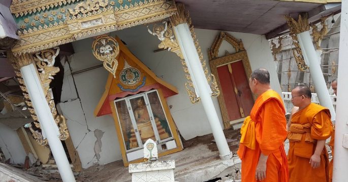 พระนครศรีอยุธยา 4 ส.ค.- พระอุโบสถเก่าแก่อยุธยาทรุดตัวหนัก จนท.ลงความเห็นเกินที่จะบูรณะต้องรื้อสร้างใหม่ ทหารช่วยเคลื่อนย้ายพระประธานและสิ่งสำคัญภายในออก เมื่อเวลา 14.00 น. (4 ส.ค.) พระธรรมรัตนมงคล เจ้าคณะจังหวัดพระนครศรีอยุธยา และนายสิปป์บวร แก้วงาม ผู้อำนวยการสำนักงานพระพุทธศาสนาจังหวัดพระนครศรีอยุธยา เร่งตรวจสอบสภาพพระอุโบสถ อายุกว่า 40 ปี ของวัดสันติธรรมาราม หรือวัดตาลเดี่ยว เลียบคลองชลประทาน 26 อำเภอวังน้อย เพื่อหาทางบูรณะซ่อมแซมจากปัญหาทรุดตัวทั้งหลังมาตั้งแต่วันที่ 3 สิงหาคมที่ผ่านมา สรุปว่าสภาพความเสียหายหนักมากไม่สามารถบูรณะ ต้องทุบทิ้งเพื่อสร้างใหม่ โดยหน่วยงานที่เกี่ยวข้องระดับจังหวัดจะพยายามหาเงินมาช่วยเหลือ แต่สิ่งแรกที่จะต้องดำเนินการคือ เคลื่อนย้ายพระประธานออกจากพระอุโบสถ ซึ่งได้รับการช่วยเหลือจากกำลังทหาร 30 นาย มาช่วยเคลื่อนย้ายพระประธานและพระพุทธรูปจำนวน 4 องค์ อย่างระมัดระวัง รวมทั้งลูกนิมิตและสิ่งของอื่น ๆ.-สำนักข่าวไทย