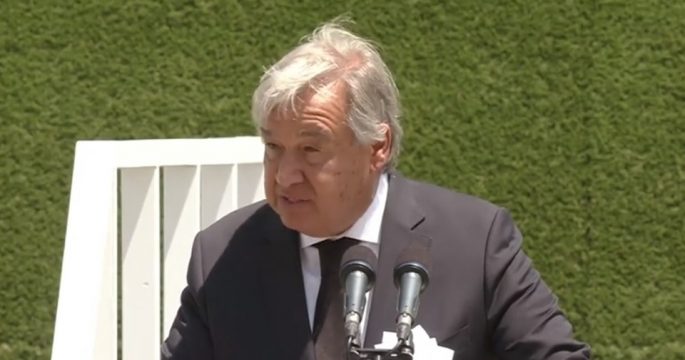 นายอันโตนิโอ กูเตอร์เรส เลขาธิการสหประชาชาติกล่าวเรียกร้องให้ปลดอาวุธนิวเคลียร์ในพิธีรำลึกครบรอบ 73 ปี เหตุการณ์ที่สหรัฐทิ้งระเบิดปรมาณูถล่มเมืองนางาซากิ