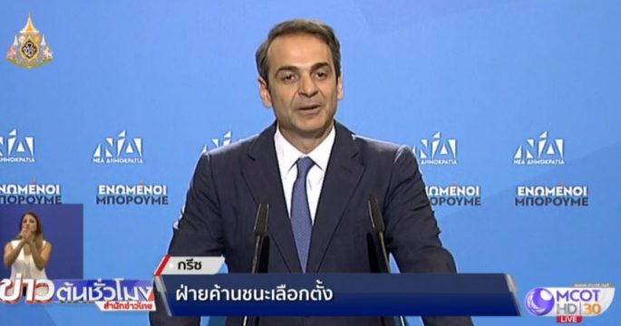 นายกรัฐมนตรีกรีซ ชนะเลือกตั้งแบบถล่มทลาย ได้รับเสียงข้างมากอย่างเด็ดขาด สามารถจัดตั้งรัฐบาลพรรคเดียวได้
