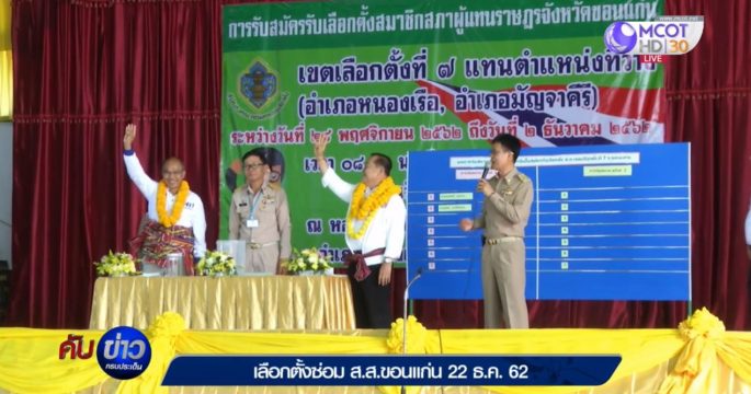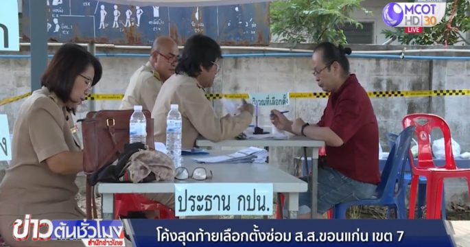 การเลือกตั้งซ่อม ส.ส.ขอนแก่น เขต 7 ทราบผลคะแนนอย่างไม่เป็นทางการของบางหน่วยแล้ว ส่วนบรรยากาศตลอดทั้งวัน นอกจากมีผู้มาใช้สิทธิ์คึกคัก ยังมีเหตุร้องและฟ้องเรื่องกาบัตรแทนกันด้วย ติดตามจากรายงาน