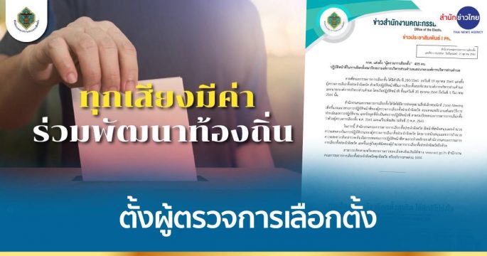 กกต. แต่งตั้งผู้ตรวจการเลือกตั้ง 405 คน ใน 76 จังหวัด ปฏิบัติหน้าที่เลือกตั้งสมาชิกสภาและนายก อบต. 5,300 แห่งทั่วประเทศ