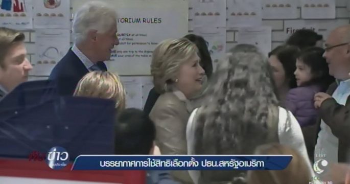 สำนักข่าวไทยรายงานสดจากนิวยอร์ก บรรยากาศชาวอเมริกันออกไปใช้สิทธิเลือกตั้งประธานาธิบดีสหรัฐ โดยนางฮิลลารี คลินตัน ออกไปสิทธิพร้อมกับสามีแล้ว