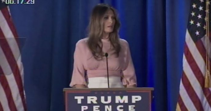 นางเมลาเนีย ทรัมป์ ภรรยานายโดนัลด์ ทรัมป์ ตัวแทนพรรครีพับลิกัน ช่วยสามีหาเสียง เน้นย้ำเรื่องผู้อพยพและการทำงานด้านสิทธิสตรี