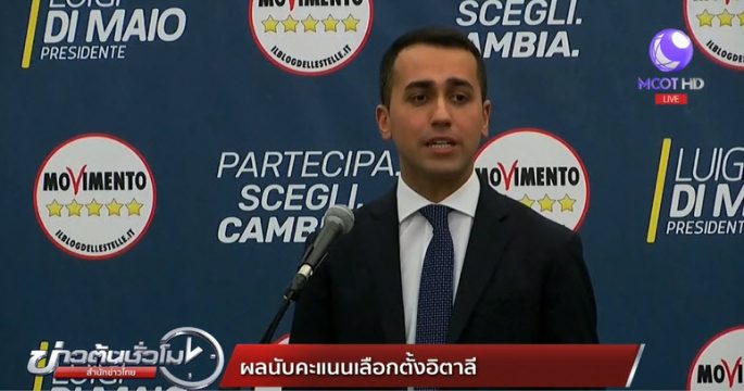 ผลการนับคะแนนเลือกตั้งทั่วไปอิตาลีล่าสุด พรรคไฟว์-สตาร์ มูฟเมนต์ ซึ่งมีนโยบายต่อต้านสหภาพยุโรปของนักการเมืองดาวรุ่ง วัย 31 ปี มีคะแนนนำเป็นอันดับ 1