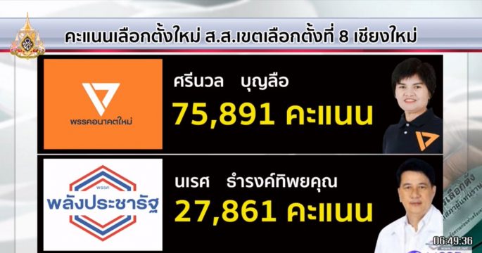 อนาคตใหม่ชนะขาด ผลไม่เป็นทางการเลือกตั้งใหม่ ส.ส.เชียงใหม่ เขต 8