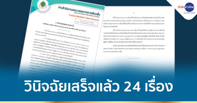 กกต.พิจารณาวินิจฉัยสิทธิสมัครรับเลือกตั้งนายกและสมาชิกสภาองค์การบริหารส่วนตำบล (อบต.) ตามที่สำนักงานฯ เสนอแล้วเสร็จ 24 เรื่อง