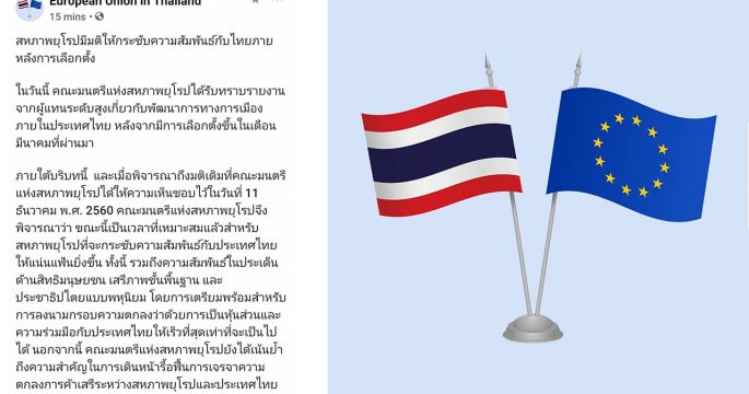 คณะมนตรีแห่งสหภาพยุโรปได้รับทราบรายงานจากผู้แทนระดับสูงเกี่ยวกับพัฒนาการทางการเมืองภายในประเทศไทย หลังจากมีการเลือกตั้งขึ้นในเดือนมีนาคมที่ผ่านมา