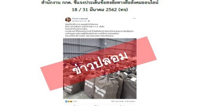 กกต. เตือนประชาชนอย่าแชร์ข่าวปลอมถุงเมล์ เพราะอาจเข้าข่ายผิด พ.ร.บ.คอมพิวเตอร์ เตรียมดำเนินคดีผู้โพสต์และส่งต่อข้อมูล