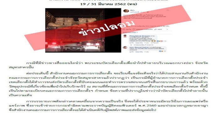 กกต.ปัดข่าวขนบัตรเลือกตั้งไปทำลาย แจงข้อเท็จจริงนำไปเก็บรักษา เตรียมดำเนินคดีกับผู้โพสต์