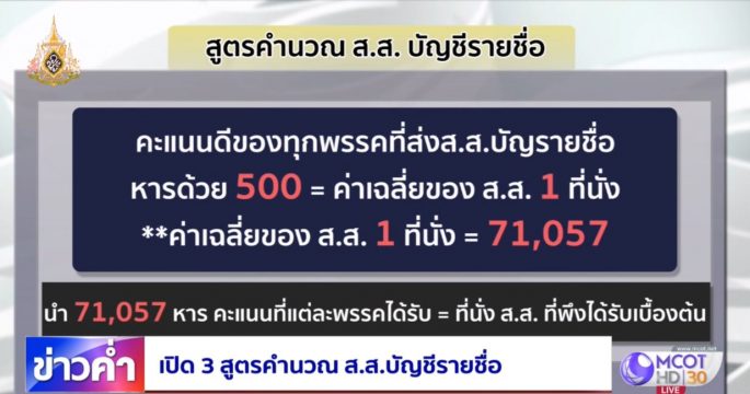 เปิด 3 สูตรคำนวณ ส.ส.บัญชีรายชื่อ