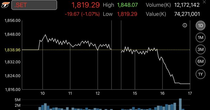 หุ้นไทยร่วงแรงเกือบ 20 จุด นักลงทุนเทขายหุ้นใหญ่ หลังตื่นตระหนกข่าวเลื่อนเลือกตั้ง ส่วนเงินบาทแข็งค่ามากสุดในรอบ 4 ปี