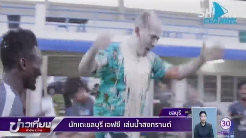 ทีมนักเตะชลบุรี เอฟซี กับการเล่นน้ำสงกรานต์ และรดน้ำดำหัว “โค้ชเทิด” เทิดศักดิ์ ใจมั่น หัวหน้าผู้ฝึกสอน