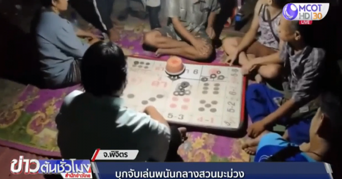 เจ้าหน้าที่สนธิกำลังปิดล้อมจับกุมชาวบ้านตั้งวงเล่นพนันไฮโล กลางสวนมะม่วง อ.เมืองพิจิตร รวบนักพนันได้ 10 คน