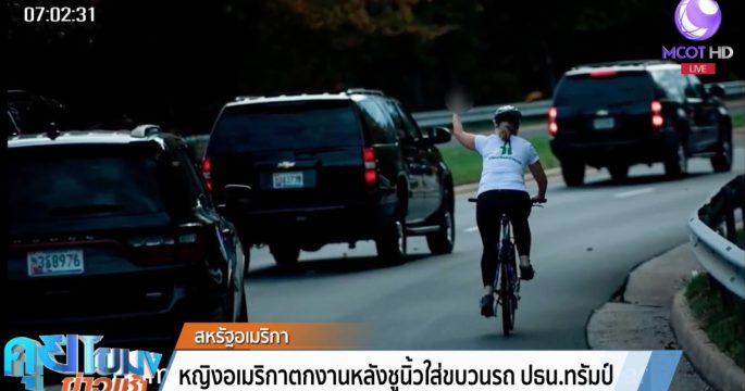 หญิงสาววัย 50 ที่ถูกไล่ออกจากงานฐาน”ชูนิ้วกลาง”ให้ขบวนรถยนต์ของประธานาธิบดีโดนัลด์ ทรัมป์ บอกไม่รู้สึกเสียใจใดๆ เลยที่การกระทำของเธอทำให้ต้องตกงาน