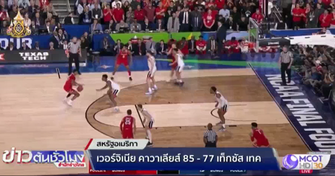 เวอร์จิเนียคว้าแชมป์บาสเกตบอลระดับมหาวิทยาลัยสหรัฐฯนำเท็กซัสเทคไป 85-77 คะแนน