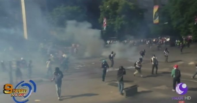 ตำรวจเวเนซุเอลา ยิงแก๊สน้ำตาและฉีดน้ำแรงดันสูงผลักดันผู้ประท้วง ที่เดินทางมาถึงทางหลวงฟรานซิสโก ฟาฮาร์โด สถานที่ชุมนุมประท้วงรายวัน