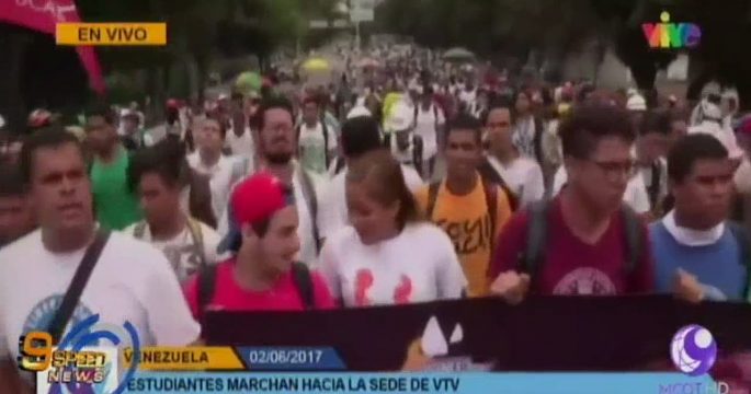 กลุ่มนักศึกษาเวเนซุเอลา เคลื่อนขบวนไปยังสถานีโทรทัศน์วีทีวีของทางการในกรุงคารากัส เพื่อคัดค้านการเสนอข่าว โดยตำหนิว่าวีทีวีเสนอข่าวที่เป็นประโยชน์ต่อรัฐบาล