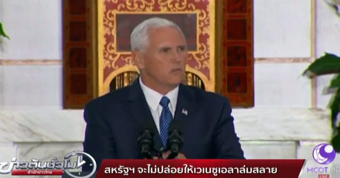 นายไมค์ เพนซ์ รองประธานาธิบดีสหรัฐ เผยสหรัฐจะไม่ปล่อยให้เวเนซูเอลาล่มสลายอย่างเด็ดขาด เพราะจะทำให้เกิดผลกระทบต่อประเทศต่างๆในภูมิภาค