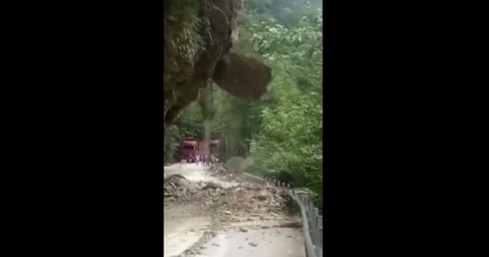 ฝนตกหนักและดินถล่มปิดขวางถนนในเขตปกครองตนเองเป่ยฉวนเฉียงในมณฑลเสฉวนทางตะวันตกเฉียงใต้ของจีนเมื่อวันอาทิตย์
