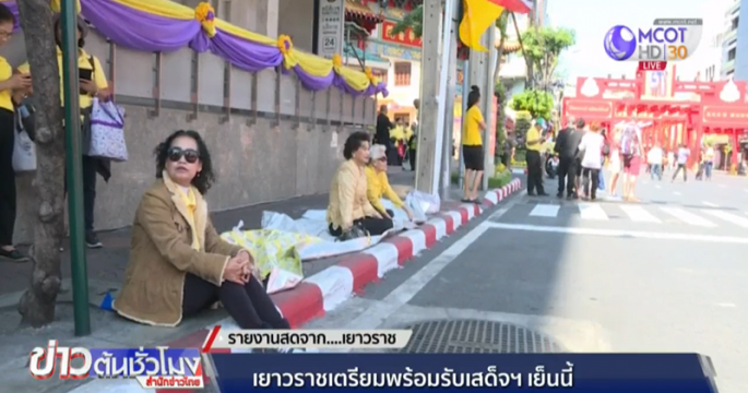 งานใต้ร่มพระบารมี สดุดีมหาจักรีวงศ์ ที่ ถ.เยาวราช ซึ่งจะมีขึ้นในช่วงเย็นวันนี้ ประชาชนที่เดินทางมารอรับเสด็จ บอกว่า ตั้งใจมาชื่นชมพระบารมีและถวายกำลังใจ เนื่องจากเสด็จพระราชดำเนิน ถ.เยาวราช ครั้งแรกในรัชกาลนี้