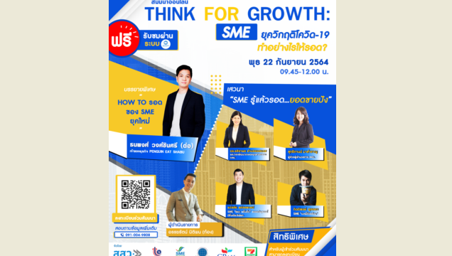 หน่วยงานภาครัฐและเอกชนร่วมกันจัดเสวนาออนไลน์ SME ยุควิกฤติโควิด-19…ทำอย่างไรให้รอด ให้เอสเอ็มอีสามารถปรับตัวและพัฒนาธุรกิจในยุคโควิดได้ วันที่ 22 กันยายนนี้