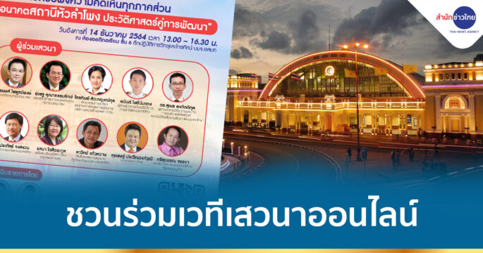 การรถไฟฯ ชี้แจงยินดีรับฟังทุกข้อเสนอแนะ กรณีพัฒนาสถานีหัวลำโพง พร้อมเชิญชวนร่วมเวทีเสวนาออนไลน์วันที่ 14 ธันวาคมนี้