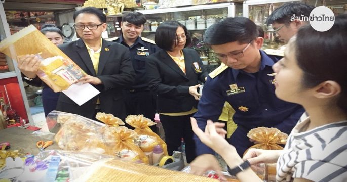 รองเลขา สคบ.นำคณะลงพื้นที่ตรวจ ‘สังฆทานและชุดไทยธรรม’ ย่านเสาชิงช้า เนื่องในวันอาสาฬหบูชาและเข้าพรรษา พบส่วนใหญ่ทำถูกต้อง มีเพียงบางส่วน ไม่มีฉลากบอกวันหมดอายุ