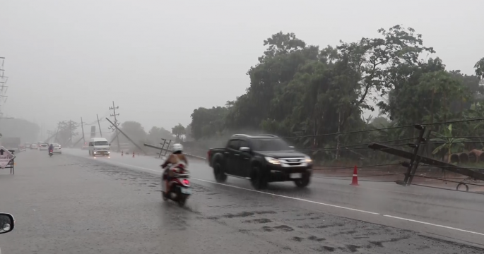 พายุฤดูร้อนพัดถล่มภูเก็ต ทำให้เสาไฟฟ้าล้มระเนระนาด 14 ต้น เจ้าหน้าที่เร่งแก้ไข ไฟดับเพียง 30 นาที