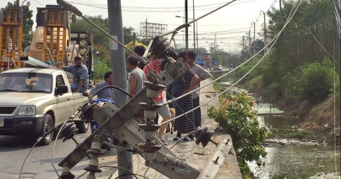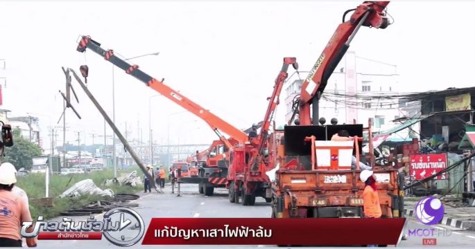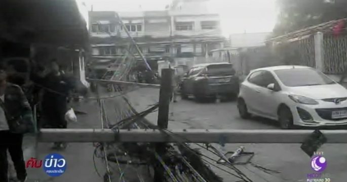 เสาไฟฟ้า ย่านลาดกระบังล้ม 14 ต้น บ้านพ่อ “โฟร์” นักร้องชื่อดังโดนด้วย