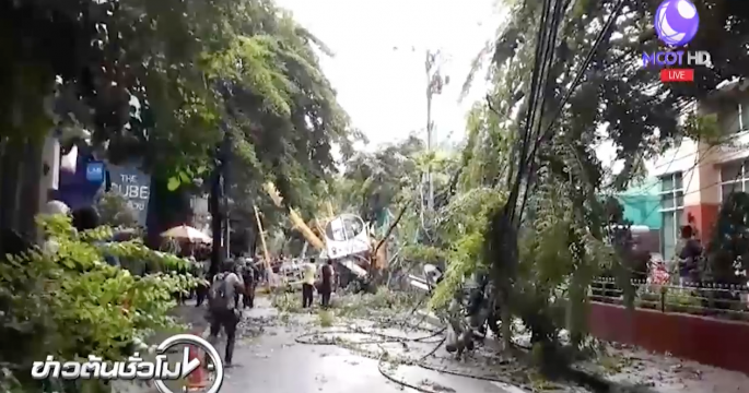 เครนล้มทับเสาไฟฟ้าภายในซอยศาลาแดง 2 เขตบางรัก ทำให้เสาไฟฟ้าล้มทับรถยนต์ มีผู้ติดอยู่ในรถ 1 รายเป็นหญิง และในรถเครนอีก 1 ราย