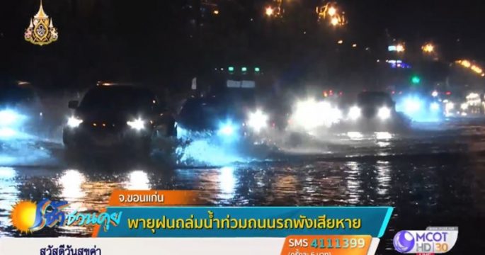 พายุฝนฟ้าคะนองถล่มหลายพื้นที่ของ จ.ขอนแก่น โดยเฉพาะเขตเทศบาลนครขอนแก่น ถนนหลายเส้นทางเกิดน้ำท่วมขังสูงกว่า 30 ซม. เกิดลมกระโชกแรงพัดต้นไม้และป้ายโฆษณาเสียหายหลายจุด
