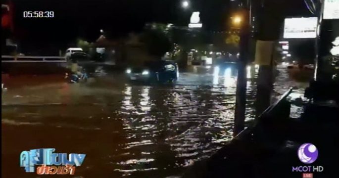 ฝนถล่มพัทยาและตัวเมืองชลบุรี ส่งผลน้ำท่วมอ่วม การจราจรติดขัด ส่วนที่เชียงราย ฝนตกหนักส่งผลให้ดินภูเขาที่อุ้มน้ำเอาไว้สไลด์ลงมาทับถนนขึ้นดอยตุง เสาไฟฟ้าหัก