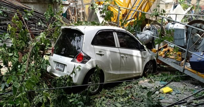 ระทึก!!เครนล้มทับเสาไฟฟ้าพังนับ10ต้น รถพัง4คัน 1ในนั้นเป็นรถของดาราสาว”ณัฐริณีย์ กรรณสูต“ มีผู้บาดเจ็บ 3 คนผอ.เขตบางรัก แจ้งดำเนินคดีกับวิศวกรคุมก่อสร้างแล้ว
