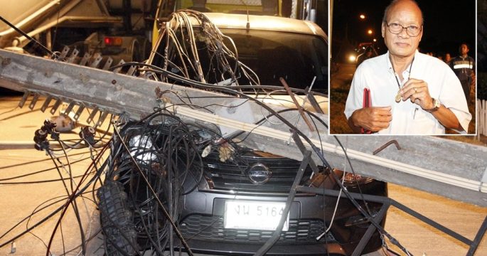 ชลบุรี 9 มี.ค.-รถปูนขนาดใหญ่เลี้ยวไม่พ้นเกี่ยวสายไฟ กระชากเสาไฟฟ้าแรงสูงล้มระเนระนาด ทับรถเก๋งผู้จัดการโรงแรม ไฟชอร์ตสนั่น คนขับรีบหนีออกจากตัวรถ รอดตายราวปาฏิหาริย์ เมื่อคืนที่ผ่านมา(8 มี.ค.) พ.ต.ต.สายใจ คำจุลลา สว.สอบสวน สภ.บางละมุง จ.ชลบุรี รุดตรวจสอบหลังรับแจ้งเกิดเหตุรถปูนเกี่ยวสายไฟจนทำให้เสาไฟฟ้าแรงสูงโค่นทับรถยนต์ได้รับความเสียหาย ภายในซอยสุขุมวิทพัทยา 9 ม.8 ต.หนองปลาไหล อ.บางละมุง ที่เกิดเหตุพบรถปูน ฮีโน่ หมายเลขทะเบียนส่วนหัว 85-4821ชลบุรี ส่วนหางเป็นถังปูนขนาดใหญ่ มีนายสมภาร ภักดีรักษ์ อายุ 45 ปี เป็นคนขับ ใกล้กันพบเสาไฟฟ้าแรงสูงล้มระเนระนาดขวางถนน จำนวน 10 ต้น บริเวณกลางถนนพบรถยนต์เก๋ง นิสสัน อัลเมร่า สีดำ หมายเลขทะเบียน งน-5164 ชลบุรี ถูกเสาไฟล้มทับ โดยมีนายพยับ สุขศรี อายุ 59 ปี ผู้จัดการโรงแรมแห่งหนึ่งในเขตอำเภอบางละมุง เป็นผู้ขับขี่ โดยนายพยับไม่ได้รับบาดเจ็บแต่อย่างใด สอบถามนายพยับ เล่าว่าขณะที่ตนจอดรอเลี้ยวรถเข้าที่พัก รถปูนคนดังกล่าวได้เลี้ยวตัดระหว่างเสาไฟฟ้ามา […]