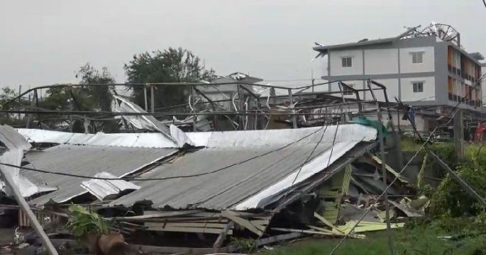 พายุฤดูร้อนกระหน่ำเมืองเลย บ้านเรือนหลังคาสังกะสีปลิวว่อน ค่าย มทบ.28 ต้นไม้ใหญ่-เสาไฟล้ม ไฟดับ ไม่มีใครเจ็บ