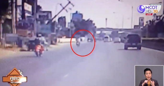 ภาพหวาดเสียว ลมกระโชกแรงทำเสาไฟฟ้าล้ม โชคดีมอเตอร์ไซค์ 2 คัน ที่กำลังขี่ผ่านมา เบี่ยงรถหลบได้ทัน รอดตายหวุดหวิด