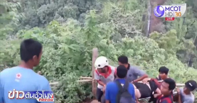 เจ้าหน้าที่เร่งให้ความช่วยเหลือ 3 คนงาน ก่อสร้างที่ได้รับบาดเจ็บจากเหตุเครนขนกระเบื้อง ที่ใช้ในก่อสร้างอาคาร 7 ชั้น ของโรงพยาบาล เกิดขาดกระทันหัน มีคนงานตกลงมากระแทกกับพื้นดิน 2 คน