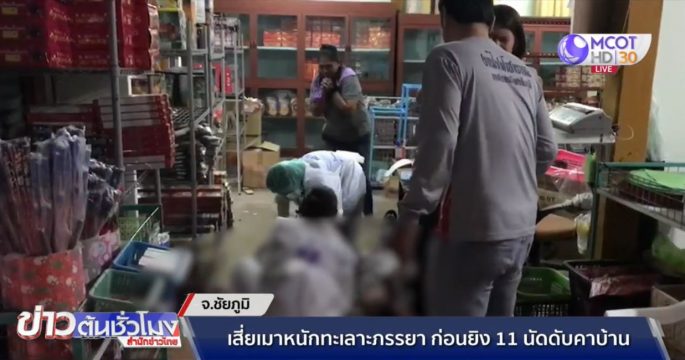 ชัยภูมิ 20 ม.ค.-เสี่ยเจ้าของโรงงานผลิตพลุ เมาสุรากลับบ้านทะเลาะภรรยา ควักปืนรัวยิง 11 นัดดับคาที่ รู้สึกตัวอีกทีกอดร่างภรรยาร้องไห้ปานจะขาดใจ