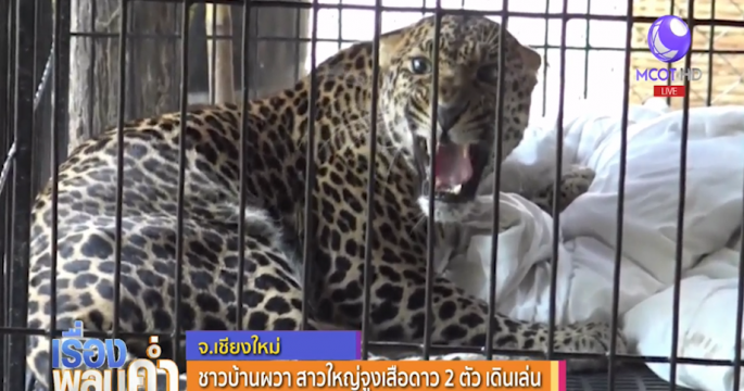 ชาวบ้านผวา! สาวใหญ่จูงเสือดาว 2 ตัวเดินเล่นในหมู่บ้าน แจ้งเจ้าหน้าที่เข้าตรวจสอบพบไม่มีใบอนุญาต