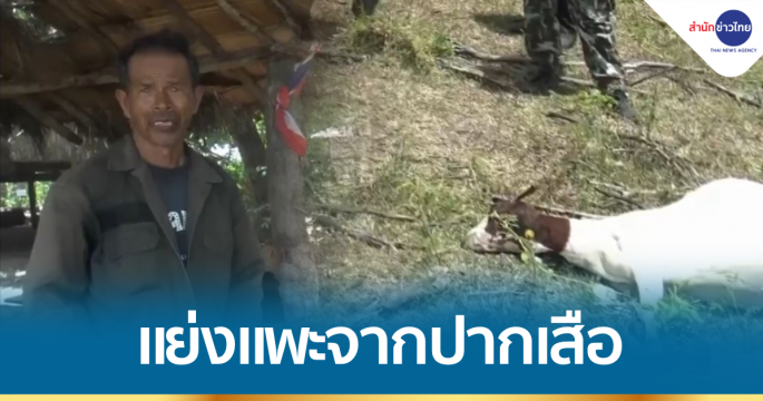 เจ้าของแพะใจเด็ดวิ่งเข้าแย่งแพะจากปากเสือแบบลืมตาย ก่อนที่เสือโคร่งป่าห้วยขาแข้งจะตกใจผละออกห่าง แต่วกโจมตีแพะตัวที่ 2 อีกครั้ง จนแพะท้องแก่ตายไป 1 ตัว