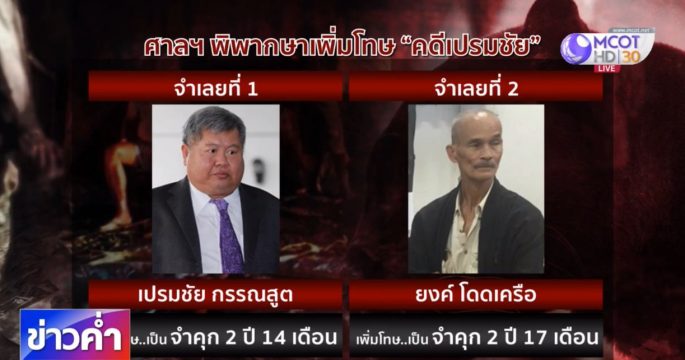 ศาลอุทธรณ์ ภาค 7 พิพากษาเพิ่มโทษ เปรมชัย จำคุก 2 ปี 14 เดือน ในคดีล่าเสือดำ กลางป่าทุ่งใหญ่ฯ