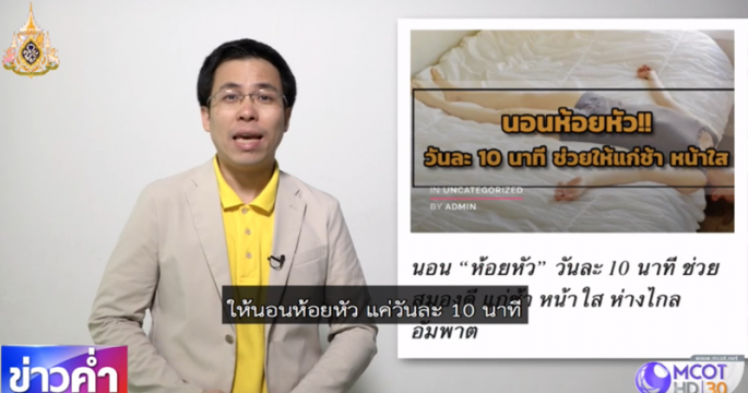 บนสังคมออนไลน์แชร์แนะนำให้นอนห้อยหัว วันละ 10 นาที จะช่วยให้สมองดี แก่ช้า หน้าใส ห่างไกลอัมพาต เรื่องนี้จริงหรือไม่ ติดตามจากศูนย์ชัวร์ก่อนแชร์