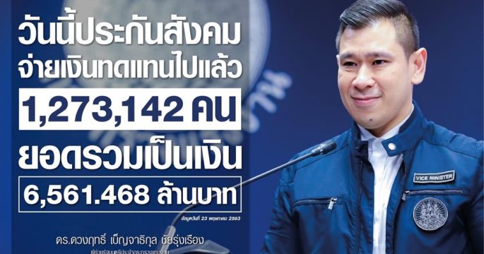 รมว.แรงงาน เผย สปส.จ่ายเงินกรณีว่างงานเนื่องจากเหตุสุดวิสัย จากโควิด-19 ลอตแรกแล้ววันนี้ 8 พันราย จากผู้ผ่านการคัดกรอง 4 แสนราย ยันมีเงินกองทุนประกันสังคม