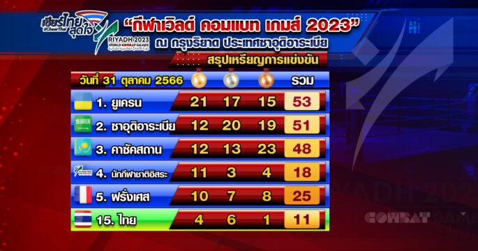 นักชกไทย คว้าเพิ่ม 1 ทอง 3 เงิน กีฬาเวิลด์คอมแบทเกมส์ 2023